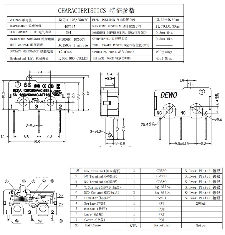 Search:DV type micro switch SS type micro switch Ultra small micro switch