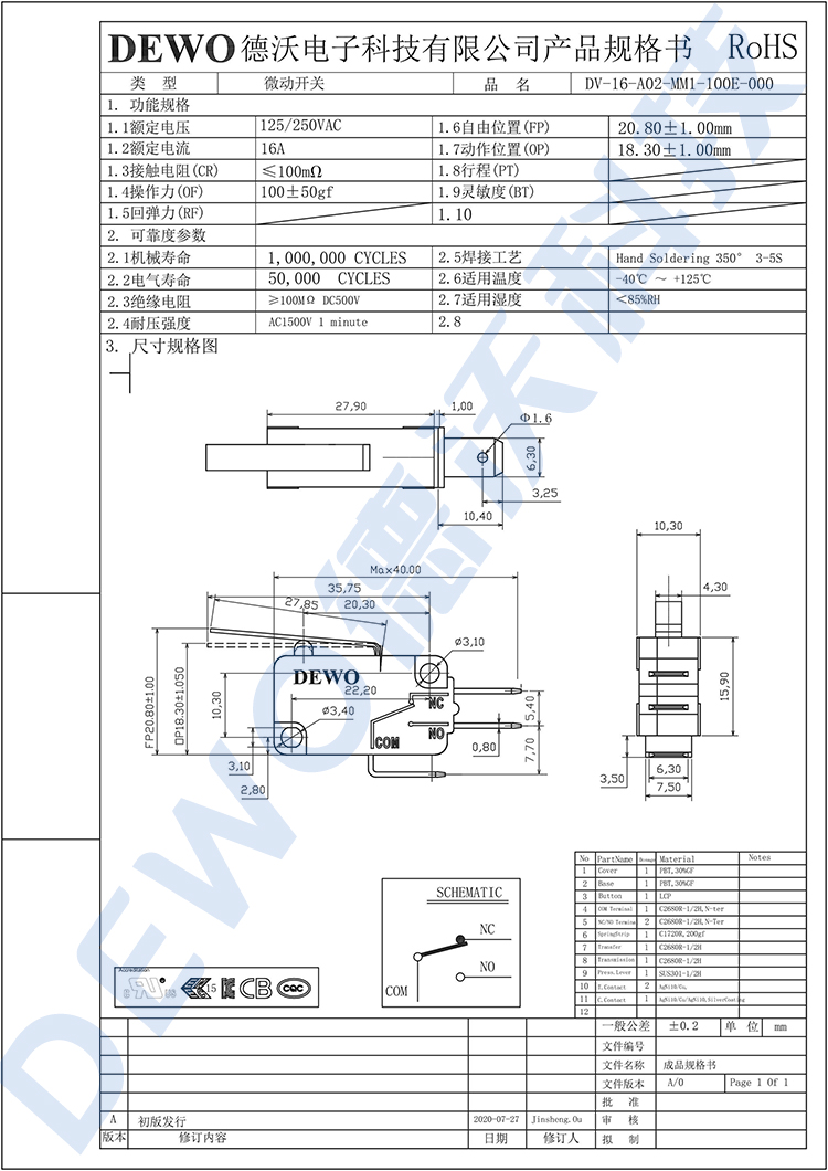 DV-16-A02-MM1-100E微動(dòng)開關(guān)