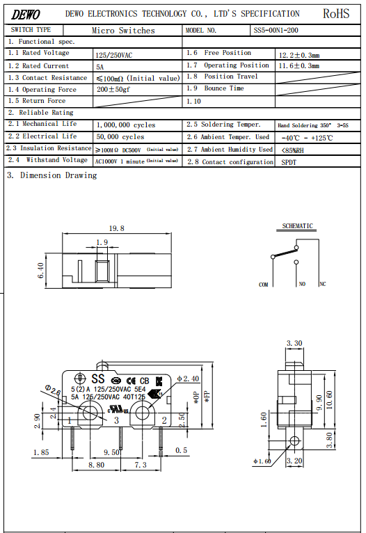 SS5-00N1-200微動開關(guān)