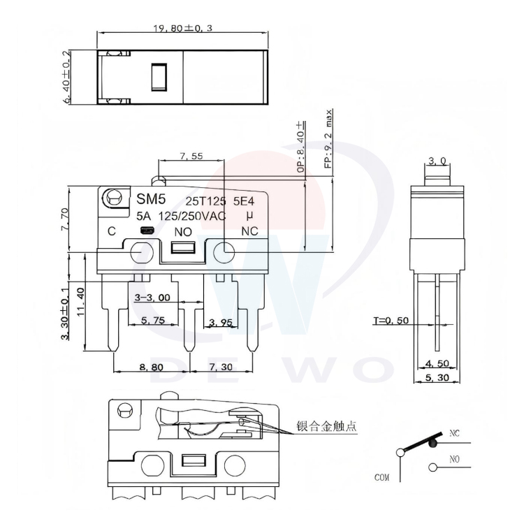SM5-W00PL-150-3彈片型微動開關(guān)