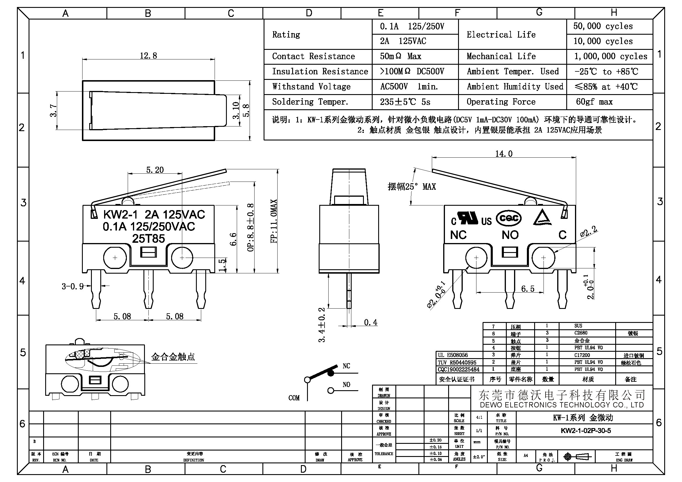 KW2-1-02P-30-5小型微動開關: