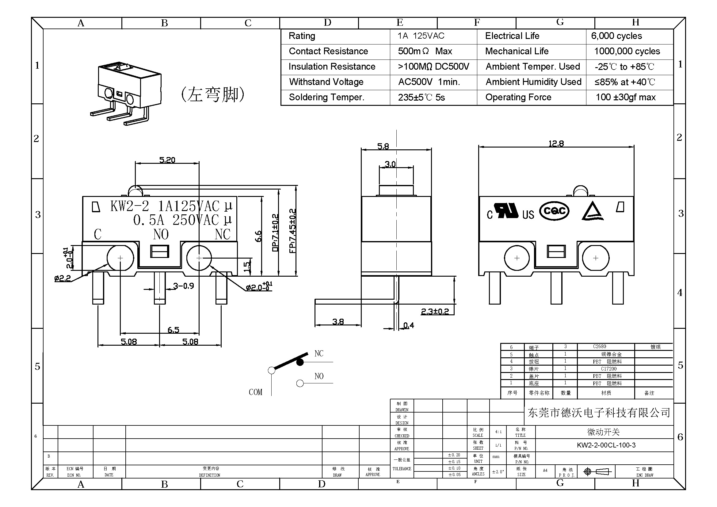 2.觸點(diǎn)材質(zhì):銀鎳合金.
