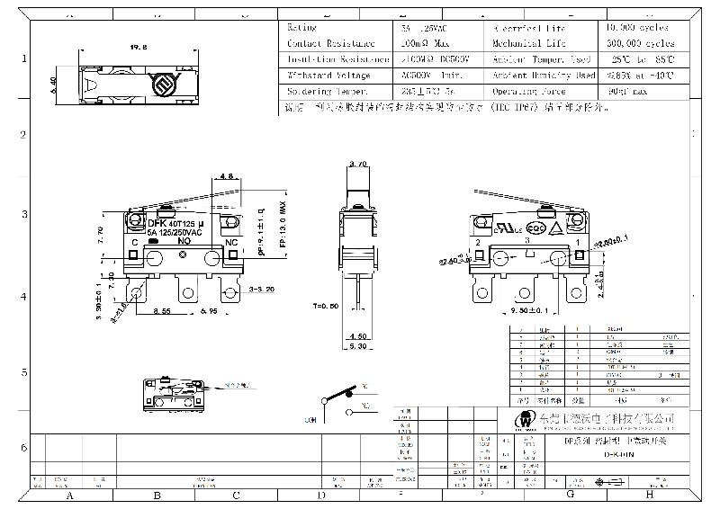 1:中型密封型微動(dòng)開(kāi)關(guān)19.8X6.4X11